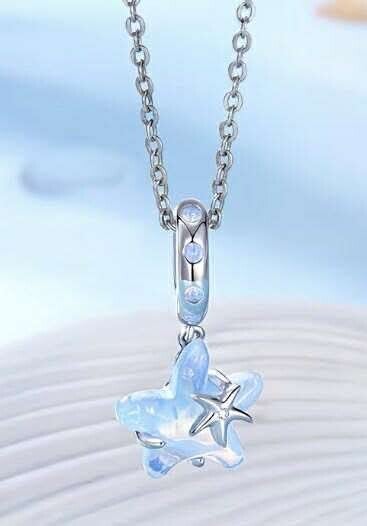 Dette elegante anhenget er laget i 925 sterling sølv og dekorert med en vakker stjerneformet stein med opalinspirert glans. Den myke blå-hvite skimringen gir et drømmende og eksklusivt uttrykk, mens den lille klare steinen i midten tilfører ekstra eleganse.